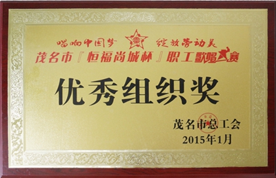 茂名市職工歌唱大賽“優(yōu)秀組織獎(jiǎng)”