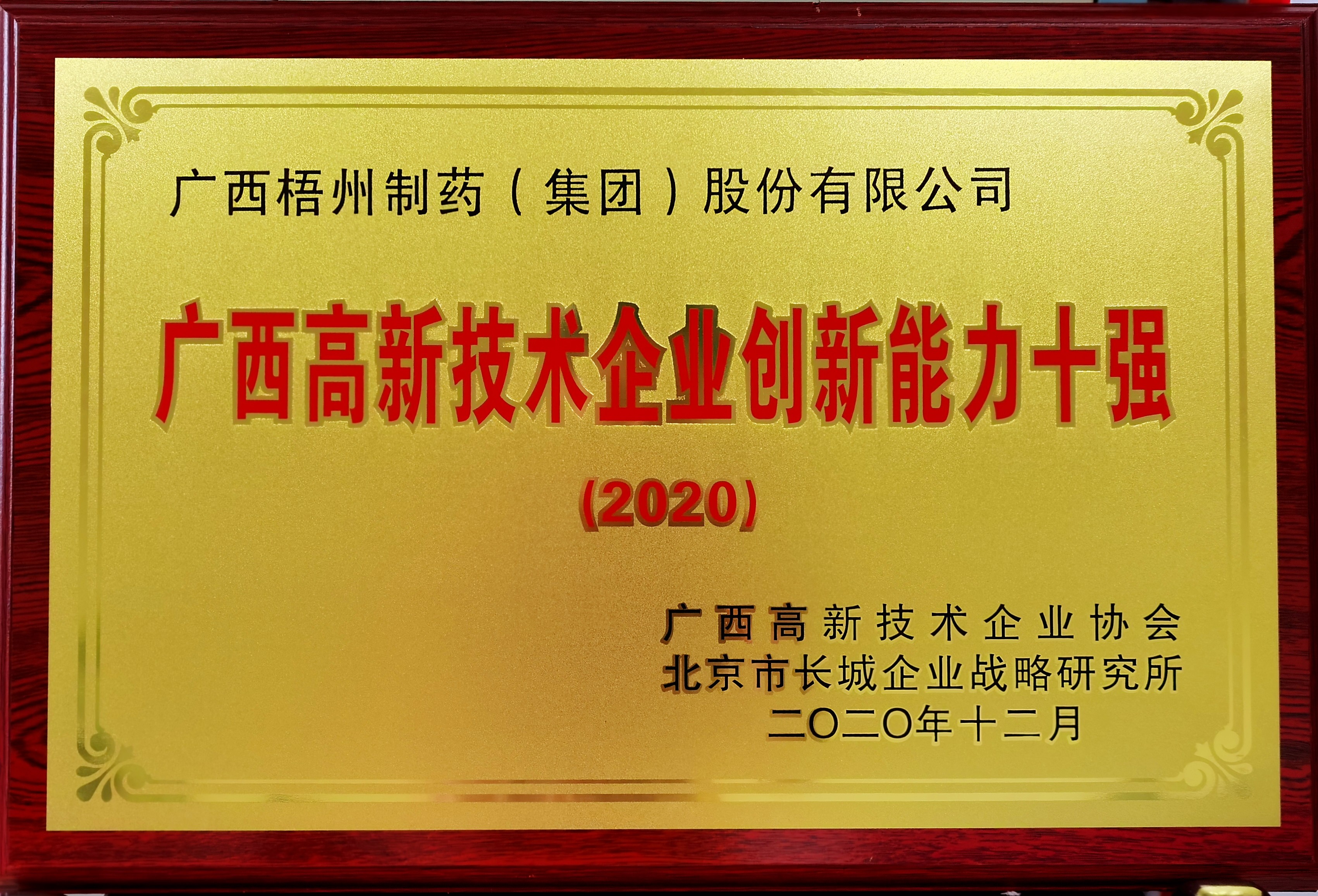 榮獲2020年廣西高新技術(shù)企業(yè)創(chuàng)新能力十強稱號
