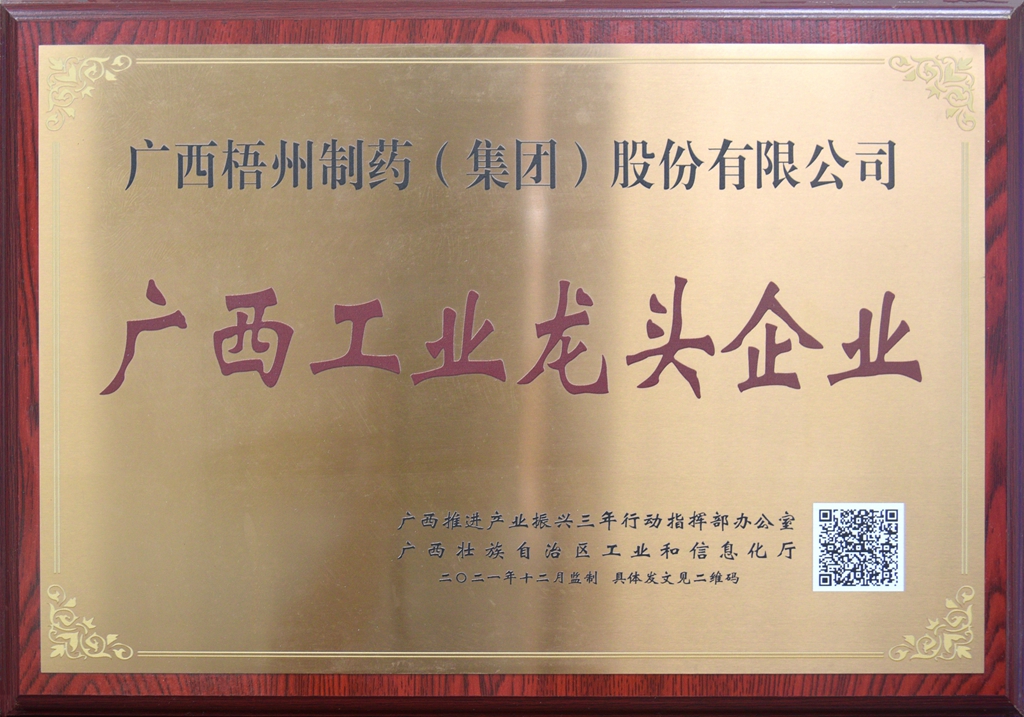 廣西梧州制藥(集團(tuán))股份有限公司獲評(píng)廣西工業(yè)龍頭企業(yè)