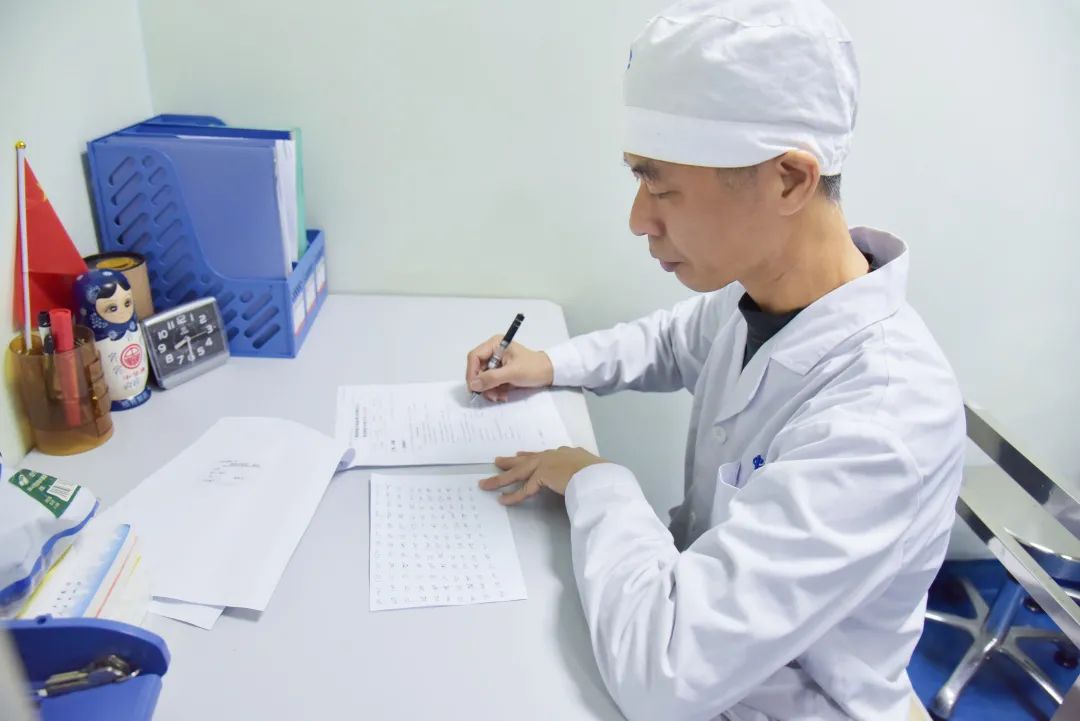 從細(xì)節(jié)看人品,這位被同事們尊稱“阿國(guó)師傅”的他,辦公桌面上各種書籍材料、業(yè)務(wù)規(guī)程、記錄文件永遠(yuǎn)都是堆疊有序;中檢專用操作間里,各種檢測(cè)試劑、設(shè)備儀器嚴(yán)格按定置管理,擺放得整整齊齊;他書寫的記錄文件,字跡工整,方正有力,點(diǎn)橫撇捺,一絲不茍,岸然如一幅硬筆書法。