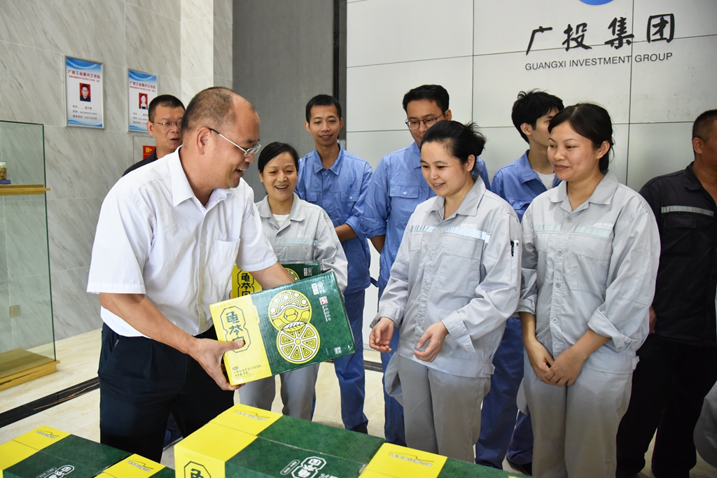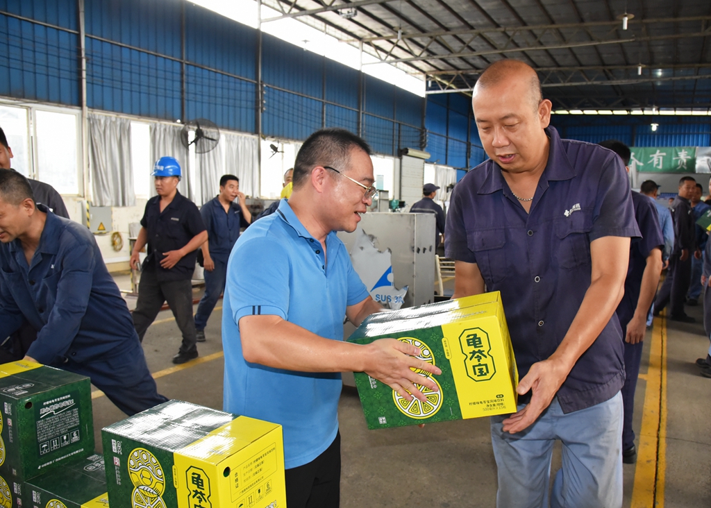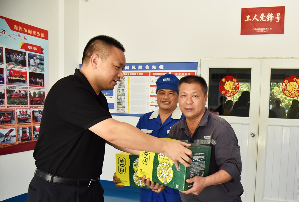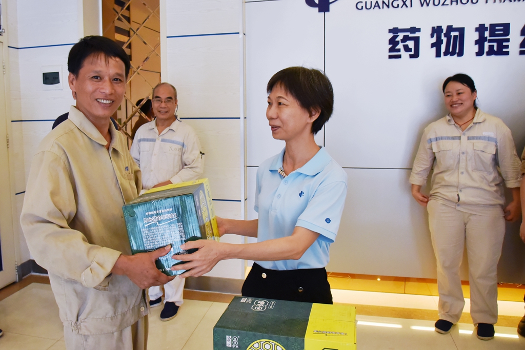 “天氣這么熱,大家辛苦了!”“注意自我保護,記得多喝水!”“崗位都備有防中暑藥品,主任們要留意職工的身體狀態(tài), 合理安排休息。”近日,梧州制藥領(lǐng)導(dǎo)班子分別帶上清涼飲品,到各車間慰問奮戰(zhàn)在高溫崗位的職工,聲聲叮嚀,讓職工們在盛夏中感受到了陣陣清涼。