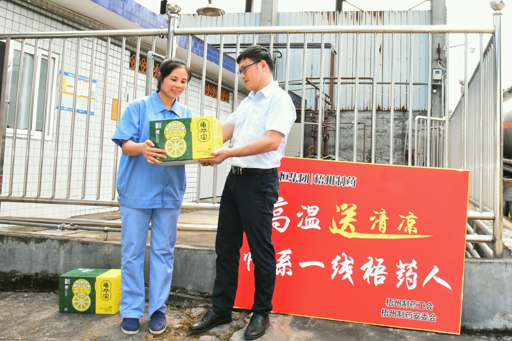夏日炎炎,驕陽似火。持續(xù)的高溫給工作在一線的職工帶來了嚴(yán)峻的考驗,但敬業(yè)的他們不懼“烤”驗,堅守崗位,用汗水換來了公司生產(chǎn)經(jīng)營工作的順利進行。為了表達公司對這些在高溫崗位工作職工的關(guān)心關(guān)愛,近日,梧州制藥工會聯(lián)合公司安委會開展2022年“高溫送清涼 情系一線梧藥人”慰問活動。
