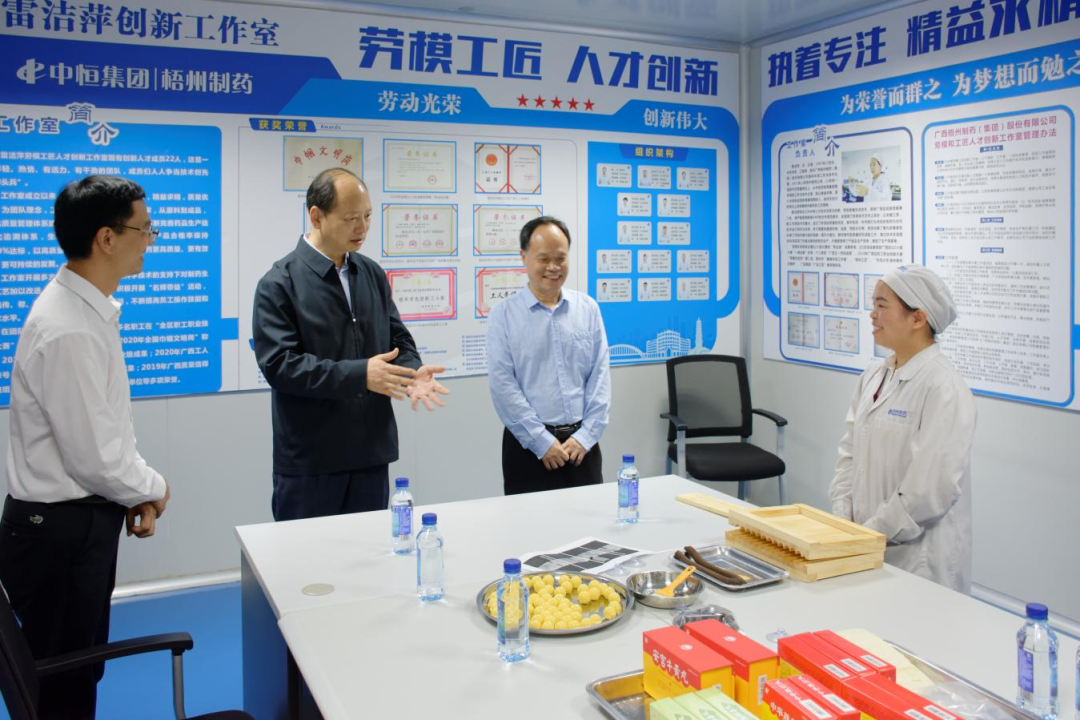 近年來,中恒集團(tuán)積極加強(qiáng)勞模和工匠人才創(chuàng)新工作室創(chuàng)建工作,成功打造以“自治區(qū)勞動模范”黃宇聲為主的區(qū)級勞模工作室1個,以“廣西工匠”“廣西五一勞動獎?wù)隆碧K婷婷,“梧州工匠”“梧州龜苓膏項目非遺傳承人”施偉東,“廣西五一勞動獎?wù)隆薄拔嘀莨そ场崩诐嵠紴橹鞯氖屑墑谀9ぷ魇?個,著力提升公司科技創(chuàng)新能力、先進(jìn)制造能力,為推動中恒集團(tuán)打造醫(yī)藥健康“排頭兵”提供人才支撐。中恒集團(tuán)工會將持續(xù)加強(qiáng)對各工作室的服務(wù)與管理,完善相應(yīng)制度建設(shè)和工作機(jī)制,促進(jìn)勞模創(chuàng)新工作室有效運(yùn)行,崗位練兵落地見效。