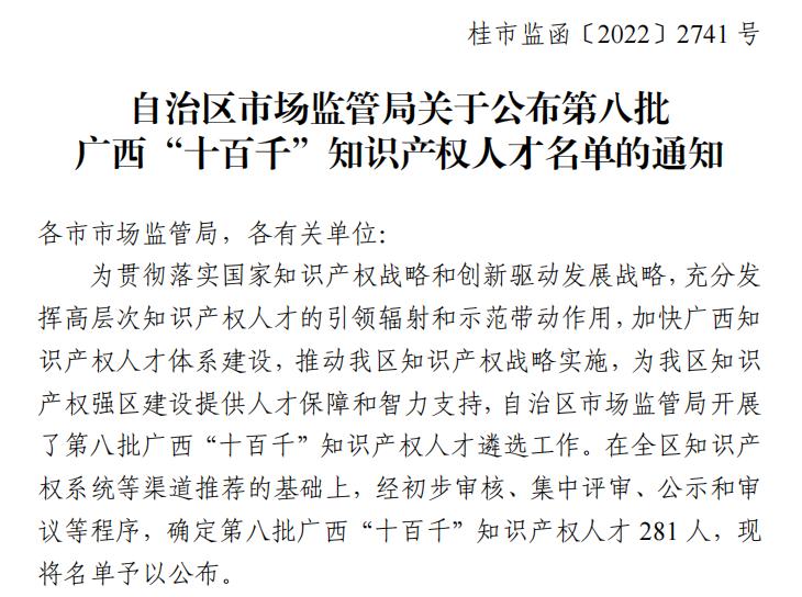 近日,自治區(qū)市場監(jiān)管局公布第八批廣西“十百千”知識產(chǎn)權(quán)人才名單,梧州制藥副總經(jīng)理麥志雄同志榮獲“A3 企業(yè)知識產(chǎn)權(quán)領(lǐng)軍人才”,知識產(chǎn)權(quán)專員黃源春同志榮獲“B3 企業(yè)知識產(chǎn)權(quán)中青年專家”,知識產(chǎn)權(quán)專員蒙永明同志榮獲“C3 企業(yè)知識產(chǎn)權(quán)實用人才”。