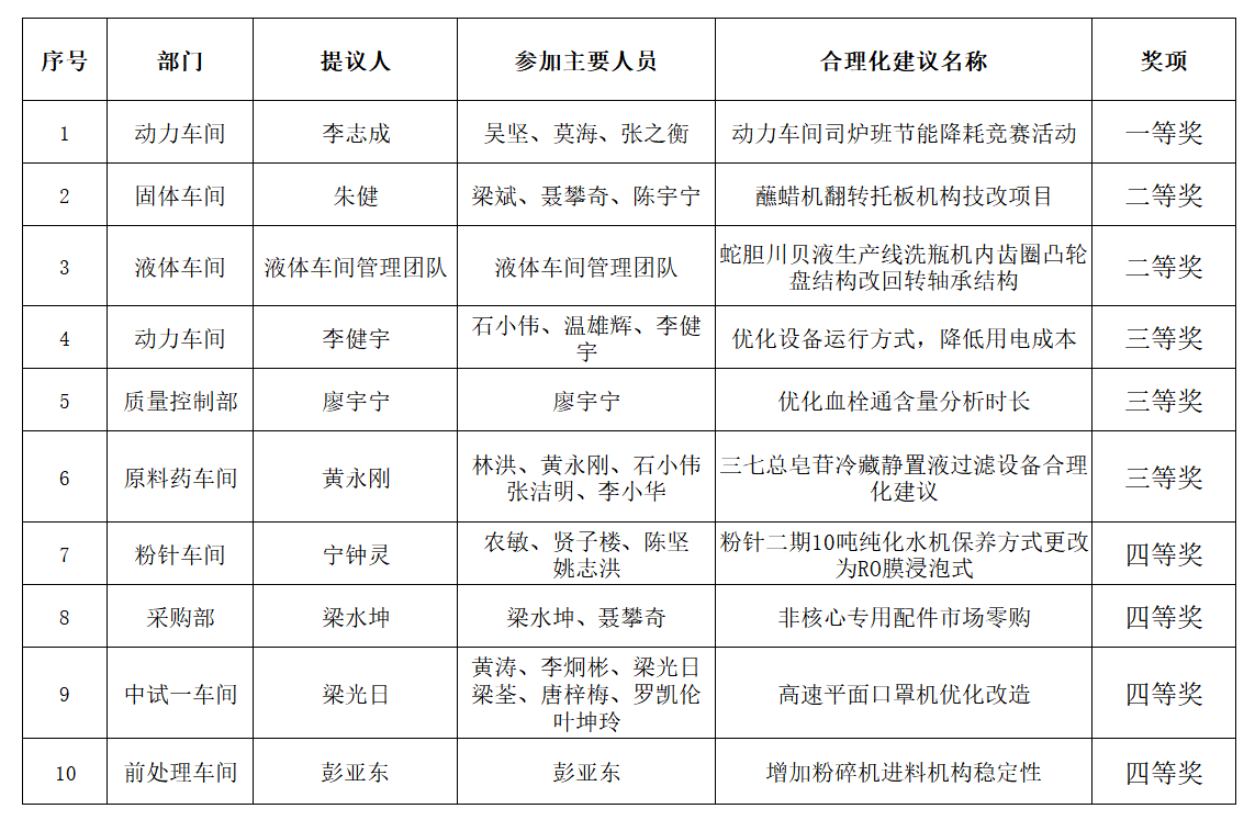 固體車間員工提出的《蘸蠟機(jī)翻轉(zhuǎn)托板機(jī)構(gòu)技改項(xiàng)目》通過(guò)對(duì)蘸蠟機(jī)翻轉(zhuǎn)托盤角度、翻轉(zhuǎn)氣缸進(jìn)氣速度調(diào)整等改造工作,每天約減少200-300只殘留蠟丸,既有效降低人工輔助落丸的安全隱患,同時(shí)減少了成品廢品率和停機(jī)清理時(shí)間,每年增加經(jīng)濟(jì)效益約5萬(wàn)元。
