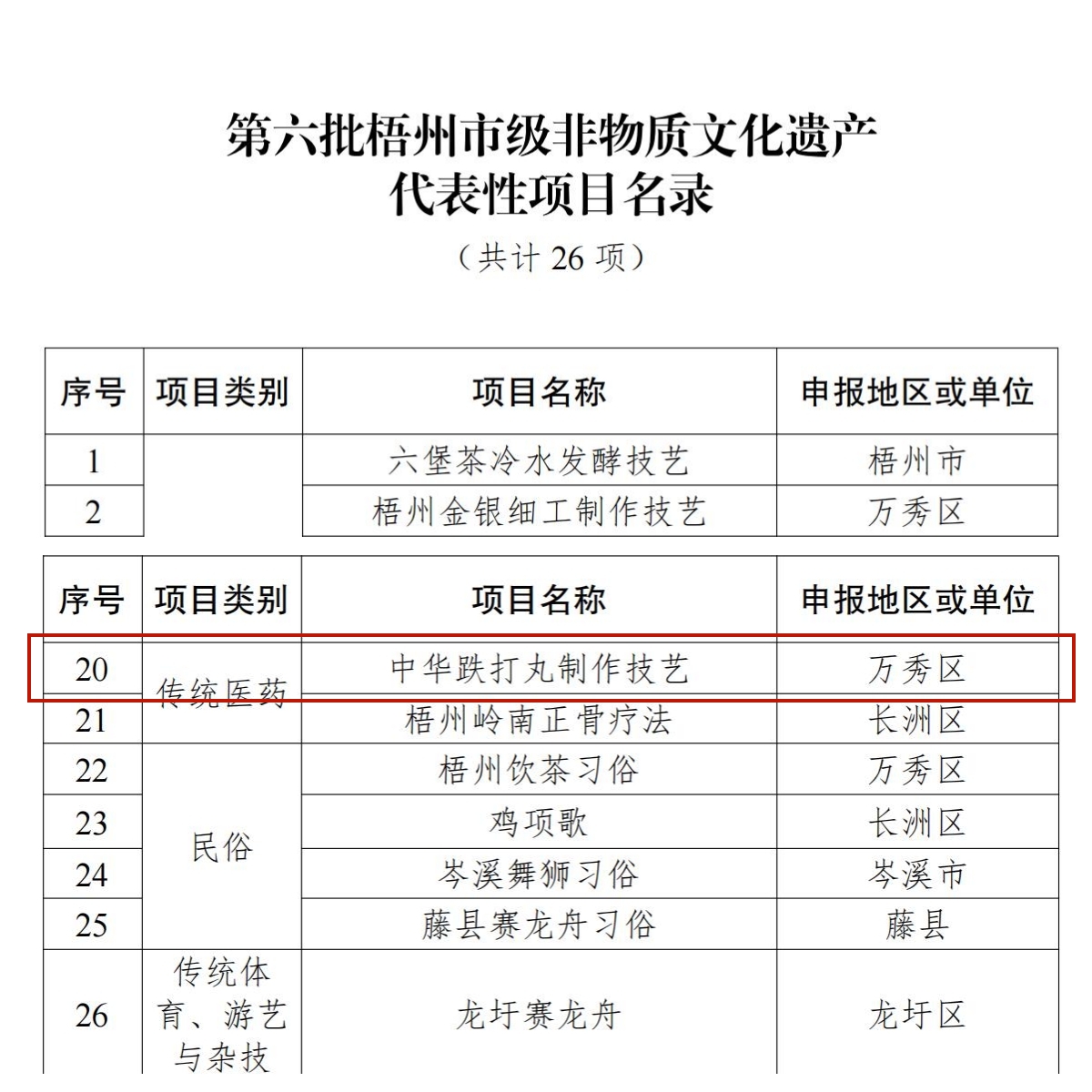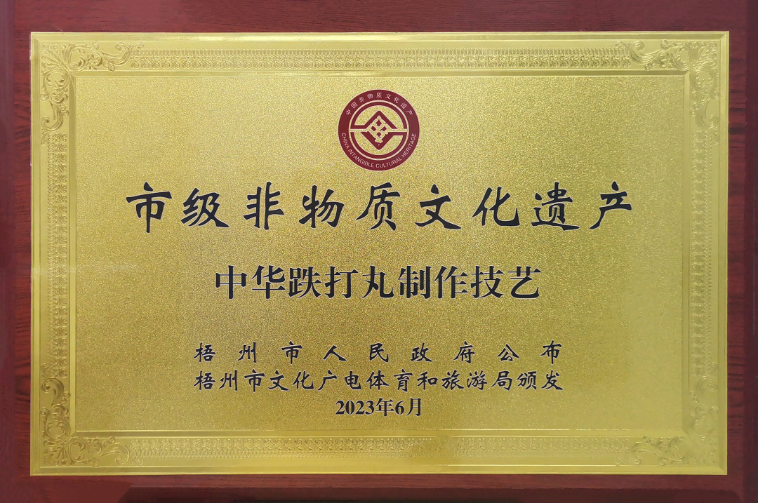 近日,在梧州市文化廣電體育和旅游局主辦的2023年“文化和自然遺產(chǎn)日”梧州市主會(huì)場(chǎng)宣傳展示活動(dòng)中,梧州制藥中華跌打丸制作技藝獲授牌匾,成功入選梧州市第六批非物質(zhì)文化遺產(chǎn)代表性項(xiàng)目名錄。