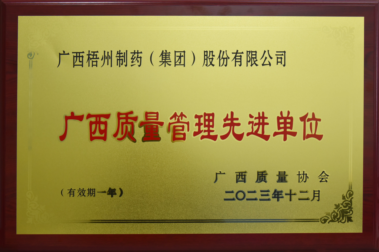 連續(xù)多年榮獲“廣西工業(yè)企業(yè)質(zhì)量管理標(biāo)桿”“廣西質(zhì)量管理先進(jìn)單位”稱號(hào),是對(duì)梧州制藥在質(zhì)量管理成效方面的充分肯定和高度認(rèn)可。梧州制藥將進(jìn)一步推廣應(yīng)用先進(jìn)質(zhì)量管理方法,積極開展質(zhì)量創(chuàng)新活動(dòng),不斷提煉總結(jié)富有企業(yè)特色的質(zhì)量管理模式,積極發(fā)揮標(biāo)桿示范引領(lǐng)作用,促進(jìn)產(chǎn)品和服務(wù)質(zhì)量邁向卓越,實(shí)現(xiàn)質(zhì)量、效率和效益的穩(wěn)步提升。