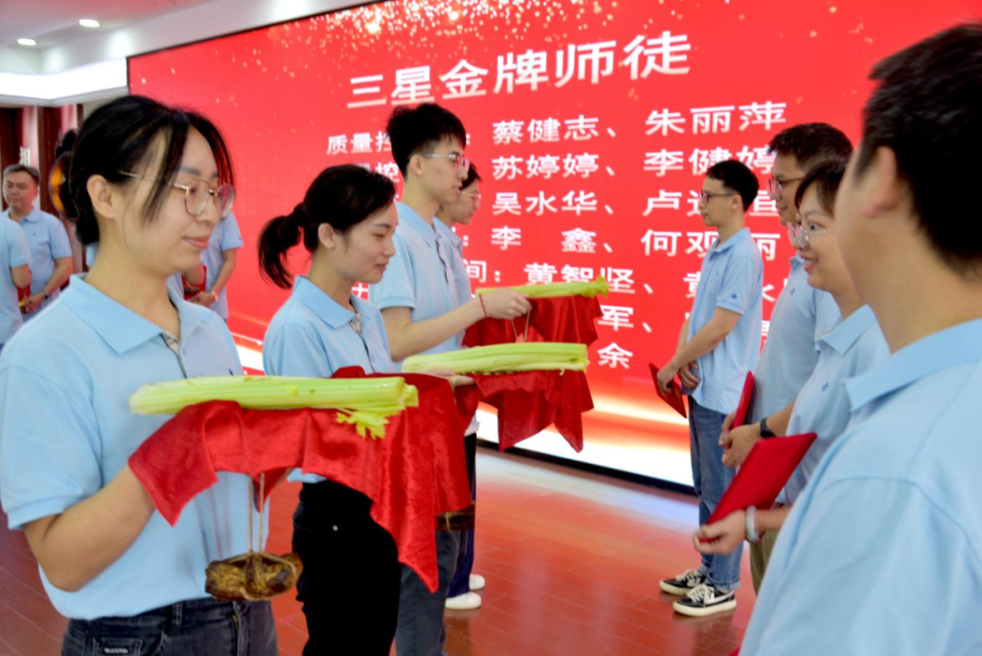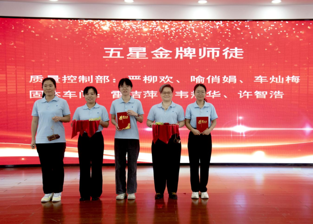 經(jīng)過近一年的評(píng)比角逐,分別評(píng)出三星、四星、五星等級(jí)的金牌師徒,獲評(píng)的星級(jí)師父們在會(huì)上光榮接受了公司領(lǐng)導(dǎo)班子為他們頒發(fā)的榮譽(yù)證書。一本本鮮紅的證書不僅僅是榮譽(yù),更是梧州制藥“造中華好藥”工匠精神代代傳承的最好見證。