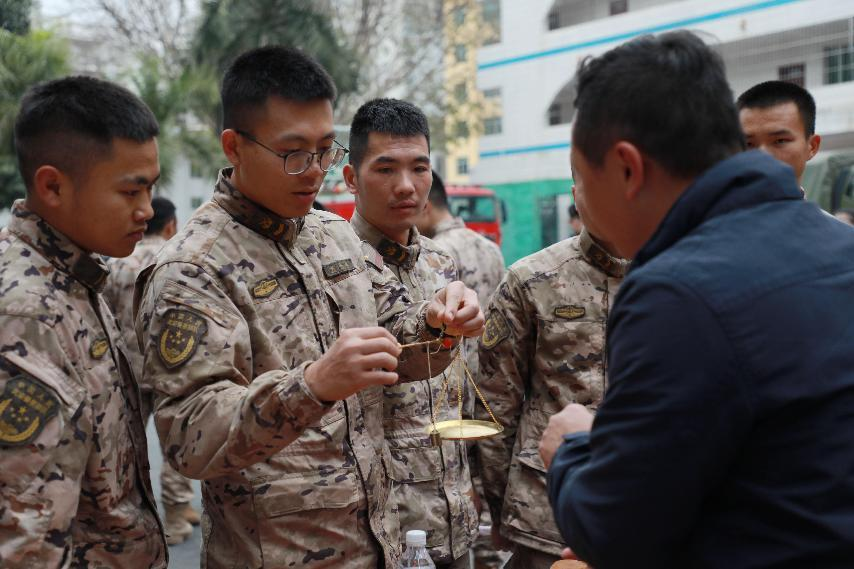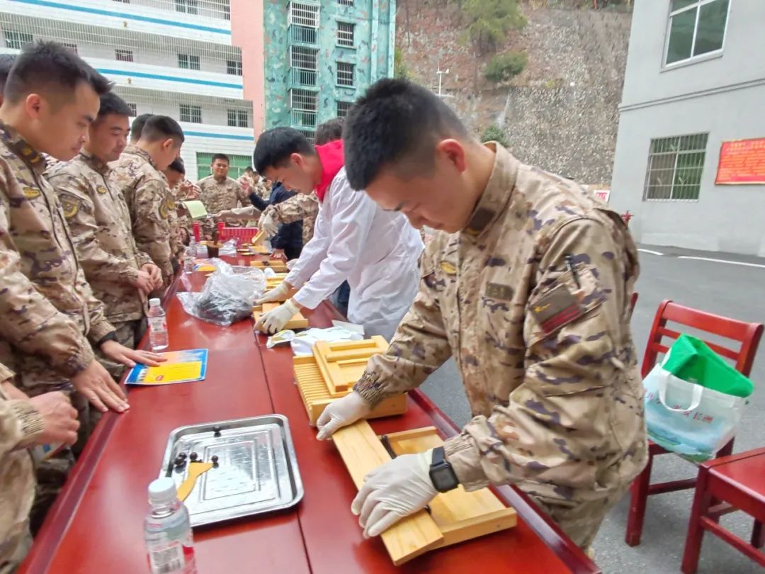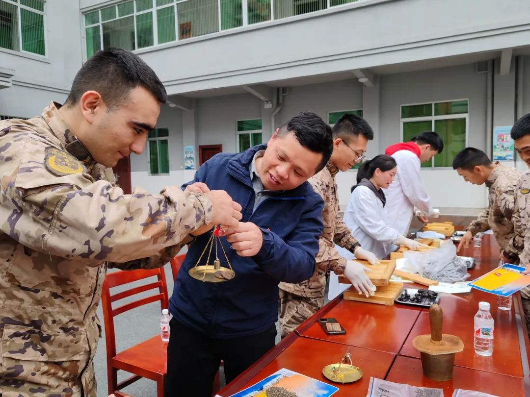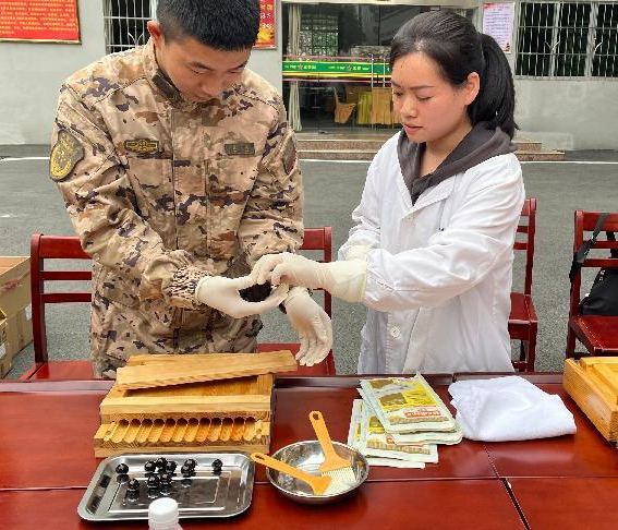 戥子、杵臼、搓丸板,這些平日很少接觸到的中藥傳統(tǒng)制藥工具,觸發(fā)起武警官兵們強(qiáng)烈的好奇心和探知欲,興致勃勃地嘗試操作,紛紛參與體驗(yàn)中華跌打丸制作技藝,從制丸條到成功搓制成丸,每一道工序無(wú)不感受著非遺文化獨(dú)特的魅力。