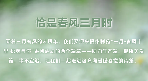 恰是春風三月時乘著三月春風的末班車,我們又迎來梧州制藥“三月?春風十里 梧藥與你”系列活動的兩個篇章——助力生產(chǎn)篇、健康關愛篇。事不宜遲,讓我們一起走進這充滿暖暖春意的詩篇?!局ιa(chǎn)篇】凝聚“志愿紅”協(xié)力助