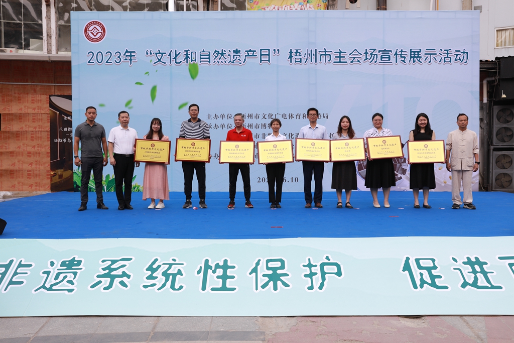 近日,在梧州市文化廣電體育和旅游局主辦的2023“文化和自然遺產日”梧州市主會場宣傳展示活動中,梧州制藥中華跌打丸制作技藝獲授牌匾,成功入選梧州市第六批非物質文化遺產代表性項目名錄。&nb