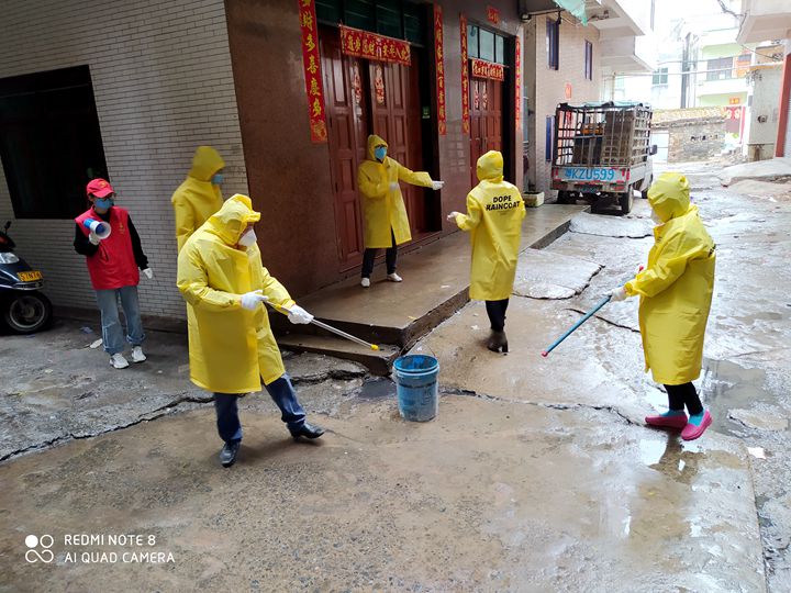 得到組織批準(zhǔn)的當(dāng)天下午,黃杰就自駕車,帶著集團(tuán)捐贈(zèng)社區(qū)的120斤消毒水等防疫物資趕到了南街社區(qū)居委會。一去到,他就背起了40斤重的消毒噴桶,跟著居委會工作人員開始了走街串巷的消毒工作。為加強(qiáng)防疫防護(hù)知識的宣傳,有長期駐村扶貧經(jīng)驗(yàn)的黃杰還用黎話自編了一個(gè)順口溜: