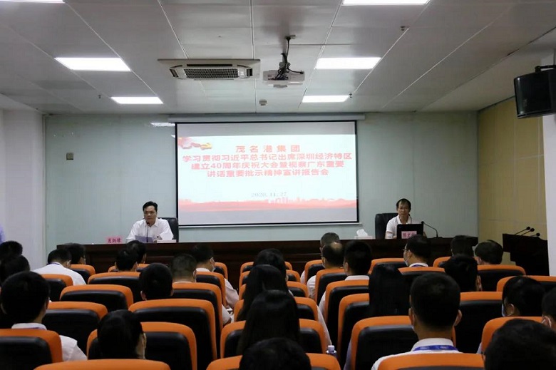 11月27日上午,茂名港集團(tuán)舉辦學(xué)習(xí)貫徹習(xí)近平總書記出席深圳經(jīng)濟(jì)特區(qū)建立40周年慶祝大會(huì)和視察廣東重要講話、重要指示精神宣講報(bào)告會(huì)。報(bào)告會(huì)邀請(qǐng)茂名市委宣講團(tuán)成員、市社科聯(lián)專職副主席陳文欽到會(huì)作了題為《以更大魄力在更高起點(diǎn)上推進(jìn)改革開放》的宣講報(bào)告。集團(tuán)黨委書記、董事長(zhǎng)劉乃英、集團(tuán)黨委副書記肖炳璋和集團(tuán)機(jī)關(guān)各部室、各下屬企業(yè)黨員干部近90人參加了宣講會(huì)。