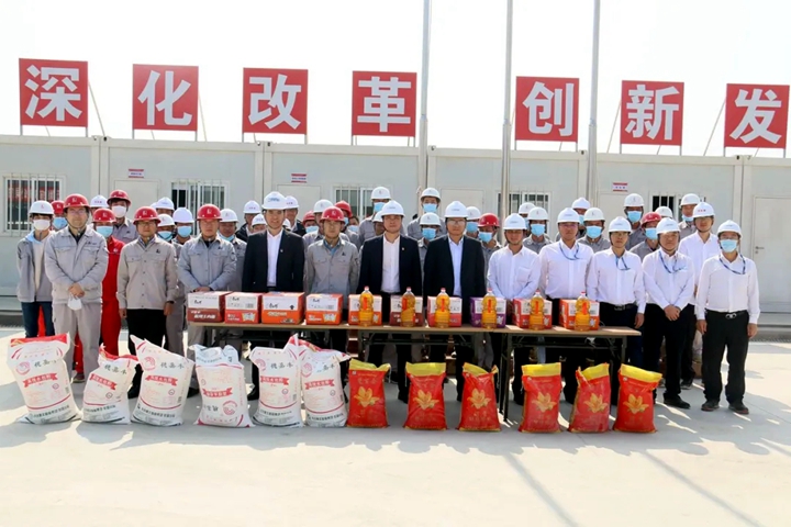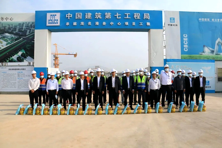 1月26日,新春佳節(jié)來臨之際,根據集團黨委工作部署,茂名港集團黨委副書記、工會主席肖炳璋,集團副總裁楊超燦率隊對集團重點項目施工單位進行慰問,并為150天大會戰(zhàn)中表現突出的施工單位授牌表彰。