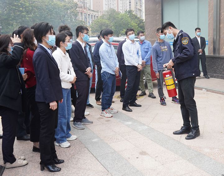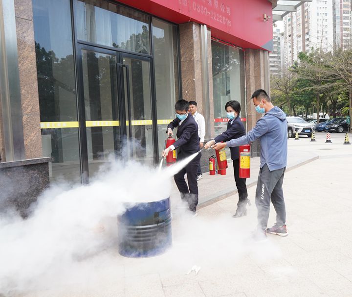 現(xiàn)場(chǎng)情景模擬疏散演練環(huán)節(jié),教官使用煙霧彈模擬會(huì)議室發(fā)生火災(zāi)情景,現(xiàn)場(chǎng)工作人員組織參訓(xùn)人員從五樓會(huì)議室按安全疏散通道指示撤離到一樓大門集中。在教官講解示范下,參訓(xùn)人員進(jìn)一步學(xué)習(xí)了干粉滅火器的使用方法和注意事項(xiàng),參與了滅油桶火實(shí)操活動(dòng)。