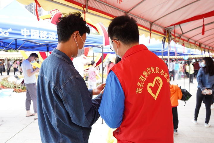 3月27日,為保障群眾核酸采樣秩序正常,根據(jù)上級(jí)安排,集團(tuán)黨委組織黨員志愿服務(wù)隊(duì)火速前往南香公園采樣點(diǎn)支援全員核酸檢測(cè)工作,讓黨旗在防控疫情斗爭(zhēng)第一線高高飄揚(yáng)。 集團(tuán)黨員志愿者們按計(jì)劃時(shí)間提前一小時(shí)到采樣點(diǎn),向醫(yī)務(wù)人員虛心學(xué)習(xí),了解檢測(cè)服務(wù)工作中最常見(jiàn)的問(wèn)題及解決方法,確保能夠?yàn)楝F(xiàn)場(chǎng)群眾提供最迅速準(zhǔn)確的志愿服務(wù)。采樣開(kāi)始后,集團(tuán)黨員志愿服務(wù)隊(duì)隊(duì)員們奔走忙碌于人流中,有序地疏導(dǎo)人流、維護(hù)秩序,督促?gòu)V大群眾遵守公共場(chǎng)所戴口罩、不聚集、保持1米線等規(guī)定。服務(wù)中,志愿者們?yōu)槿罕姶鹨山饣、消除顧慮、安撫緊張情緒,并指引和幫助群眾們打開(kāi)核酸檢測(cè)小程序做好信息錄入等工作。