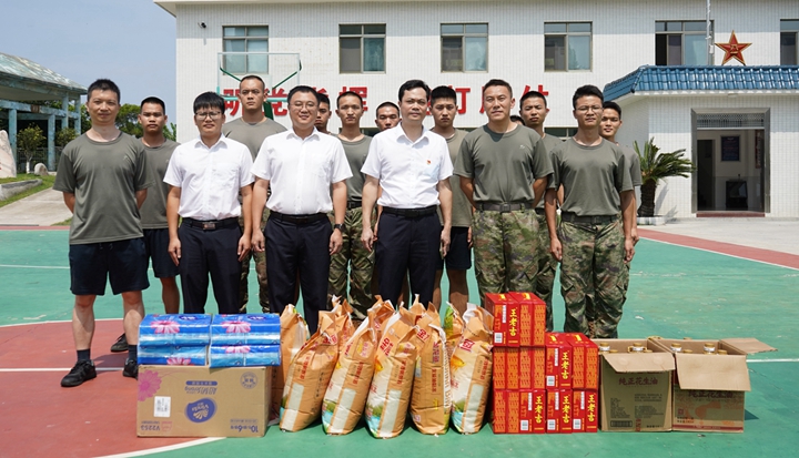 7月30日,根據(jù)集團黨委工作部署,集團黨委副書記、總裁肖炳璋率隊到蓮頭嶺某部開展“八一”建軍節(jié)擁軍慰問活動,向部隊官兵致以節(jié)日的祝福和誠摯的問候。 慰問中,肖炳璋與官兵們親切交談,詳細詢問了官兵的日常生活、學(xué)習(xí)和執(zhí)勤訓(xùn)練情況,對他們?yōu)槊?jīng)濟社會發(fā)展作出的重大貢獻表示衷心感謝和崇高敬意。他表示,茂名港集團的快速發(fā)展,離不開駐地部隊的有力支持。集團將一如既往地關(guān)心和支持軍隊建設(shè),用心用情用力做好擁軍優(yōu)屬工作。他希望,雙方不斷加強溝通交流,推動軍民融合深度發(fā)展,打造和諧穩(wěn)定的優(yōu)良港口營商環(huán)境,攜手共同應(yīng)對當前復(fù)雜的經(jīng)濟形勢和多重困難挑戰(zhàn),共同譜寫新時代雙擁工作新篇章。