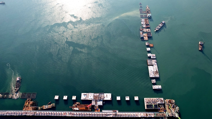 本項(xiàng)目52個沉箱全部一次順利安裝完成,提前完成重要節(jié)點(diǎn)計劃,為下一步碼頭上部結(jié)構(gòu)的施工提供了工作面,也為下一節(jié)點(diǎn)目標(biāo)的如期建設(shè)創(chuàng)造了良好條件。(古智斤) |