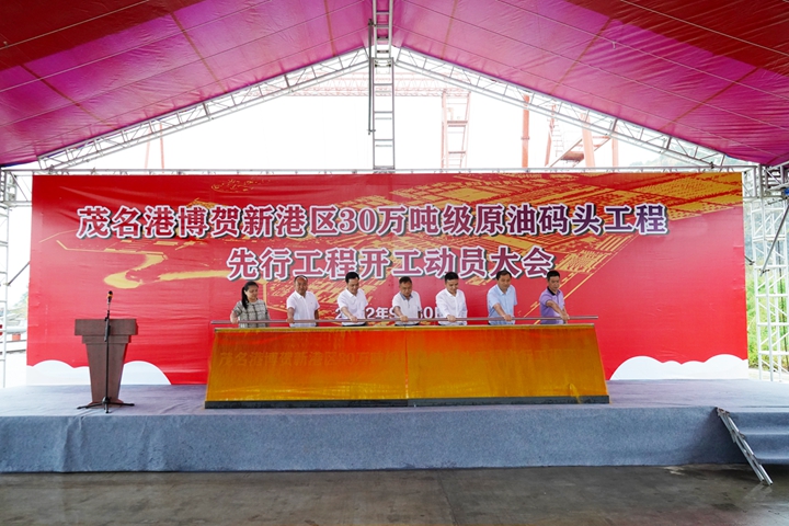 張有欽指出,茂名港博賀新港區(qū)30萬噸級(jí)原油碼頭工程先行工程開工動(dòng)員活動(dòng)是落實(shí)市委、市政府“建深水大港、興濱海綠城”發(fā)展戰(zhàn)略工作部署的具體行動(dòng),將有力推動(dòng)濱海新區(qū)打造千億級(jí)臨港產(chǎn)業(yè)集群。希望茂名港集團(tuán)在確保質(zhì)量安全的前提下,力爭30萬噸級(jí)原油碼頭項(xiàng)目早日建成投產(chǎn),為茂名市、濱海新區(qū)高質(zhì)量發(fā)展夯實(shí)基礎(chǔ)、積蓄后勁。濱海新區(qū)各相關(guān)部門要強(qiáng)化大局意識(shí)、服務(wù)意識(shí)、責(zé)任意識(shí)和協(xié)作意識(shí),優(yōu)化建設(shè)環(huán)境、提高行政效能,積極主動(dòng)做好協(xié)調(diào)服務(wù),幫助解決困難和問題,確保項(xiàng)目順利實(shí)施、加快建設(shè)。 王志華表示,茂名港博賀新港區(qū)30萬噸級(jí)原油碼頭工程是茂名港進(jìn)一步提升港口等級(jí)的標(biāo)志性工程,對(duì)完善博賀新港區(qū)碼頭布局、豐富港口服務(wù)功能、提升港口競爭力具有重要意義。他要求,集團(tuán)上下要以這次動(dòng)員大會(huì)為新的起點(diǎn),全力推進(jìn)全年重點(diǎn)項(xiàng)目建設(shè)目標(biāo)圓滿完成。一是堅(jiān)定信心,提高政治站位,要緊緊圍繞“建深水大港、興濱海綠城”發(fā)展戰(zhàn)略,切實(shí)增強(qiáng)抓項(xiàng)目穩(wěn)發(fā)展的責(zé)任感緊迫感,把思想統(tǒng)一到全市抓項(xiàng)目促投資150天大會(huì)戰(zhàn)動(dòng)員會(huì)議的工作部署上來,加快推進(jìn)30萬噸級(jí)原油碼頭順利實(shí)施。二是真抓實(shí)干,積極主動(dòng)作為,按照市委、市政府關(guān)于茂名港口岸擴(kuò)大開放工作部署,集中力量,細(xì)化量化推進(jìn)項(xiàng)目流程和節(jié)點(diǎn)任務(wù),全力推進(jìn)博賀新港區(qū)碼頭建設(shè),確保全面完成各項(xiàng)目建設(shè)目標(biāo),助力茂名港順利實(shí)現(xiàn)口岸擴(kuò)大開放。三是加強(qiáng)黨的領(lǐng)導(dǎo),樹牢廉政風(fēng)險(xiǎn)防范意識(shí),強(qiáng)化底線思維和紅線意識(shí),以優(yōu)良作風(fēng)推動(dòng)項(xiàng)目建設(shè),以項(xiàng)目建設(shè)錘煉干部作風(fēng),努力打造茂名港口建設(shè)的優(yōu)質(zhì)工程、廉潔工程,推動(dòng)茂名港集團(tuán)高質(zhì)量發(fā)展。 程志磊表示,中交一航局二公司將秉承“寧讓汗水漂起船、不讓工期拖一天”的光榮傳統(tǒng),堅(jiān)決扛起央企政治責(zé)任,全面貫徹落實(shí)各項(xiàng)工作要求,集中優(yōu)質(zhì)資源、調(diào)集精干力量,發(fā)揮技術(shù)、裝備和人才優(yōu)勢,嚴(yán)把工程安全關(guān)、質(zhì)量關(guān)、進(jìn)度關(guān),確保茂名港博賀新港區(qū)30萬噸級(jí)原油碼頭項(xiàng)目早日建成投產(chǎn),為茂名現(xiàn)代化濱海城市建設(shè)貢獻(xiàn)力量!