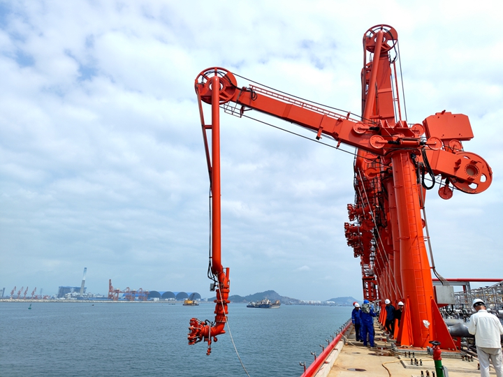 為確保如期完成設備調試、泊位配套設備管道電儀安裝等工作,滿足茂名港口岸擴大開放條件,博賀新港區(qū)10萬噸級成品油碼頭臨時黨支部充分發(fā)揮黨建引領作用,每天堅守在項目最前線深入現(xiàn)場,通過精心組織、科學安排,統(tǒng)籌安裝施工單位和設備廠家,與各方精誠協(xié)作、緊密配合,僅使用三天時間優(yōu)化了輸油臂控制柜的內部的線路改造,實現(xiàn)輸油臂全部調試成功;并僅花2天時間完成登船梯調試工作。為推動項目由安裝到完成調試邁進一大步,實現(xiàn)碼頭具備接卸能力的條件,以優(yōu)異的成績迎接口岸開放驗收工作。 據悉,博賀新港區(qū)10萬噸級成品油碼頭項目共安裝了7臺電液驅動輸油臂;采用了適用于2-30萬噸級碼頭EBL-E4型登船梯。其中2臺14寸輸油臂負責輸送航空煤油、2臺14寸輸油臂負責輸送柴油或者汽油、1臺14寸輸油臂負責油氣回收、2臺16寸輸油臂負責輸送原油。輸油臂靜止狀態(tài)立高18米,單臺輸油量時效2750立方米,能夠裝卸最大10萬噸級油輪。(徐貴宇 江振好) |