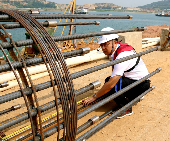 “當(dāng)時(shí),很多企業(yè)來(lái)港區(qū)考察,對(duì)我們沒(méi)有信心,認(rèn)為我們不可能把防波堤建好!不服輸?shù)膭⒍蛋得鹆藙。為了加快施工進(jìn)度,他帶領(lǐng)團(tuán)隊(duì)在東閣嶺山上查看爆破位置,論證制定最優(yōu)運(yùn)輸方案,為了節(jié)約時(shí)間,在山上吃飯、樹下休憩是常有的事。 “你知道雞同鴨講是什么樣的嗎?”當(dāng)提及最初開(kāi)荒時(shí),劉冬忍不住笑言,最初最難的不是灘涂開(kāi)荒,不是架梁建堤,而是語(yǔ)言不通,不知所云。博賀新港區(qū)建設(shè)之初,在征地拆遷、用地、用林上,少數(shù)村民不了解政策,在得到補(bǔ)償后仍是情緒激動(dòng)、煽動(dòng)阻撓施工,到現(xiàn)場(chǎng)攔截施工車輛,甚至打砸過(guò)往通勤車。劉冬都是第一時(shí)間趕到場(chǎng)了解情況后,積極對(duì)村民進(jìn)行安撫,語(yǔ)言不通的他耐心解說(shuō),穩(wěn)定村民情緒。語(yǔ)言不通就比手勢(shì),比手勢(shì)不懂就執(zhí)筆寫畫,筆畫不懂就央求本地的語(yǔ)言“翻譯官”幫忙翻譯,他積極協(xié)調(diào)配合新區(qū)征地拆遷辦公室、項(xiàng)目協(xié)調(diào)小組,妥善化解征地過(guò)程中的各種問(wèn)題。 “辛苦?不苦!能參與茂名港的開(kāi)荒,我甘之若飴!劉冬眼神堅(jiān)定地說(shuō)。從東閣嶺的征地、東西防波堤的建設(shè)、化工碼頭的建設(shè)等等,到茂名港口岸擴(kuò)大開(kāi)放的工作任務(wù)。博賀港區(qū)的每個(gè)項(xiàng)目每一處都留下了他的足跡和汗水。他熱愛(ài)工作,敬業(yè)奉獻(xiàn),配合相關(guān)部門做好項(xiàng)目建設(shè)前期各項(xiàng)工作,全力推進(jìn)集團(tuán)各重大項(xiàng)目順利建設(shè)落地。這些項(xiàng)目的建設(shè)都凝聚著劉冬和他帶領(lǐng)的同志們的辛勤付出和敬業(yè)奉獻(xiàn)。