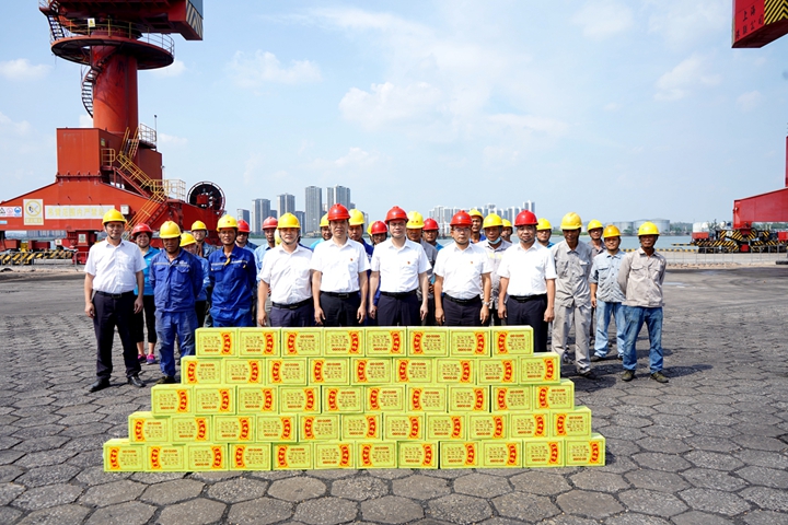 近日,茂名港集團黨委副書記、總裁肖炳璋,茂名港集團黨委委員、副總裁、工會主席楊超燦分別帶隊到集團下屬港口經(jīng)營公司碼頭作業(yè)現(xiàn)場、中油王港公司庫區(qū)、博賀新港區(qū)重點項目施工現(xiàn)場等處“送清涼”,向奮斗在一線的職工傳達集團黨委、集團工會的問候與關懷,并為他們發(fā)放充足的解暑飲料。