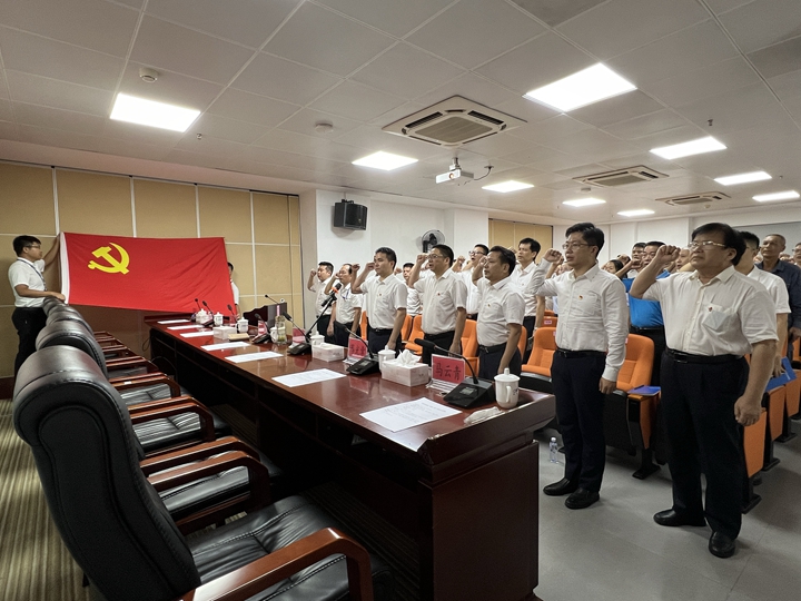 在表彰大會上,面對鮮紅的黨旗,全體黨員面向鮮艷的黨旗舉起右拳,莊嚴宣誓,回顧對黨和人民的承諾,進一步錘煉對黨的絕對忠誠品格。