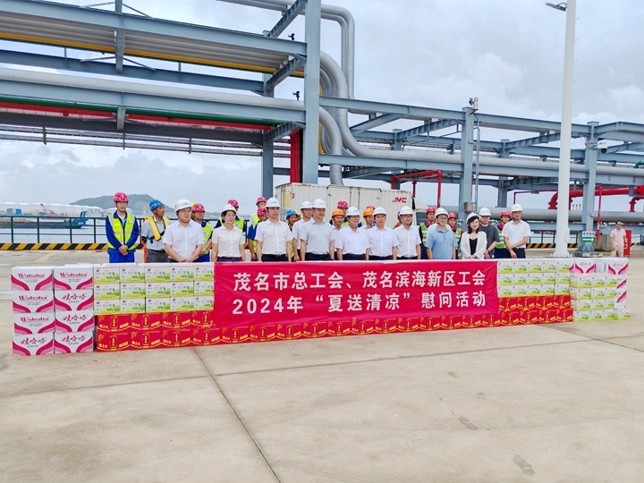 7月17日,茂名市總工會黨組成員、專職副主席陳仲偉率市總工會工作人員到集團開展“夏送清涼”慰問及調研活動,在炎炎夏日給默默堅守工作崗位的職工送上絲絲涼意。濱海新區(qū)黨工委組織人事部副部長、四級調研員,區(qū)工會副主席梁曉翔陪同慰問。茂名港集團工會主席馬云青參加活動。