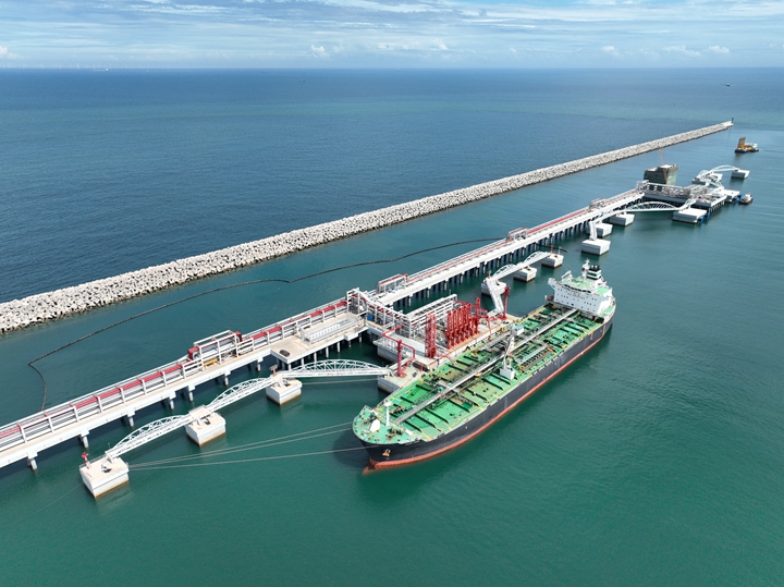 5月29日,利比里亞籍油輪"瓦萊里"號(長183米,寬32米)成功靠泊茂名石化博賀港儲(chǔ)運(yùn)公司(以下簡稱“石化儲(chǔ)運(yùn)公司”)10萬噸級成品油碼頭E2泊位,標(biāo)志著該碼頭正式投產(chǎn)運(yùn)營。此次靠泊的"瓦萊里"號載運(yùn)3.7萬噸進(jìn)口石腦油,是碼頭建成后迎來的首艘油輪。