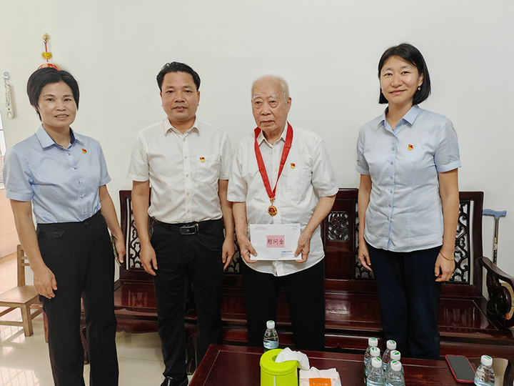七月流火,黨旗飄揚(yáng)。在這個(gè)充滿榮光與紀(jì)念意義的偉大日子——慶祝中國共產(chǎn)黨成立104周年,集團(tuán)黨委懷著崇高的敬意與深切的關(guān)懷,組織開展了“七一”送關(guān)懷慰問活動(dòng),為集團(tuán)老黨員和困難黨員送上節(jié)日的誠摯問候和溫暖的慰問品,向他們致以最崇高的敬意,讓組織的關(guān)懷如春風(fēng)化雨,滋潤心田。集團(tuán)領(lǐng)導(dǎo)班子成員分別帶隊(duì)走訪慰問老黨員、困難黨員共4人。 在走訪過程中,集團(tuán)領(lǐng)導(dǎo)班子成員與他們親切交談,詳細(xì)了解黨員的身體狀況、家庭生活情況和實(shí)際困難,叮囑他們要保重身體,保持積極樂觀的心態(tài),并送上慰問金和米、油物資,讓他們感受到集團(tuán)黨委始終牽掛他們的生活,感謝他們?yōu)辄h的事業(yè)和集團(tuán)發(fā)展作出的貢獻(xiàn)。