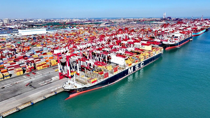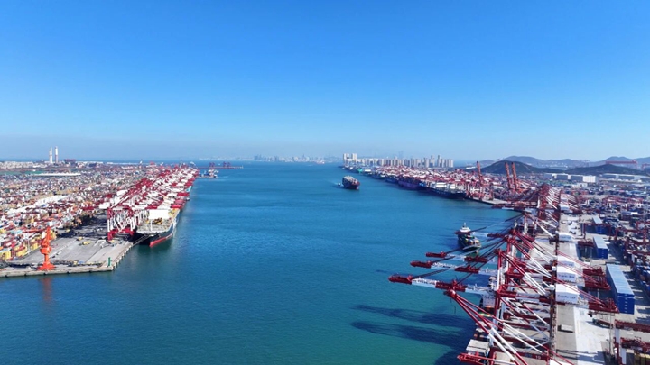 在建成全國(guó)首座全國(guó)產(chǎn)全自主自動(dòng)化碼頭基礎(chǔ)上,青島港加速智慧港口迭代升級(jí),推動(dòng)人工智能應(yīng)用中試基地成果轉(zhuǎn)化。今年以來(lái),持續(xù)優(yōu)化、推廣自主研發(fā)的A-TOS(碼頭智能管控系統(tǒng)),13次刷新自動(dòng)化碼頭裝卸效率世界紀(jì)錄;推進(jìn)傳統(tǒng)碼頭自動(dòng)化改造,通過(guò)研發(fā)碼頭智能體、攻關(guān)自動(dòng)化裝卸關(guān)鍵技術(shù),實(shí)現(xiàn)全場(chǎng)景、全流程、全機(jī)種自動(dòng)化,助力集裝箱、紙漿、鐵礦石、糧食等貨種接連打破效率紀(jì)錄;打造“云港通”口岸線(xiàn)上服務(wù)平臺(tái),實(shí)現(xiàn)“關(guān)港通”智慧查驗(yàn),應(yīng)用全球首個(gè)港口服務(wù)大模型方舟TaaS,進(jìn)一步提升了裝卸作業(yè)的服務(wù)體驗(yàn)和決策效率。 智慧港口效率的提升離不開(kāi)海關(guān)監(jiān)管服務(wù)的升級(jí)保障。青島海關(guān)充分發(fā)揮山東港口青島港在‘一帶一路’中的陸海互聯(lián)優(yōu)勢(shì),推廣“先期機(jī)檢”“抵港直裝”“船邊直提”等自動(dòng)化作業(yè)模式,通過(guò)升級(jí)升級(jí)智能空軌、集裝箱順勢(shì)核重等智能化設(shè)施設(shè)備,將海關(guān)監(jiān)管無(wú)縫嵌入港口生產(chǎn)作業(yè),實(shí)現(xiàn)了海關(guān)與港口物流信息交互,為外貿(mào)企業(yè)打造了一條綠色、高效的出海物流通道。