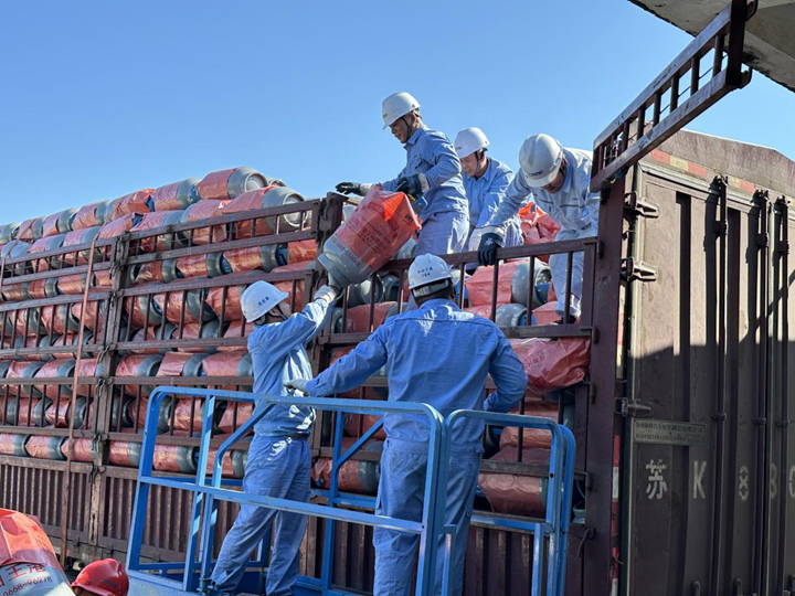 午時剛過,滿載氣瓶的貨車抵達(dá)作業(yè)區(qū)域。隨著現(xiàn)場指揮黃思揚一聲令下,干部職工迅速組成攻堅梯隊,形成“卸載—轉(zhuǎn)運—碼放”高效作業(yè)鏈。青年員工陳子豪、鄧卓晶主動承擔(dān)車頂重活,老員工龔波、楊靖發(fā)揮經(jīng)驗優(yōu)勢統(tǒng)籌協(xié)調(diào),全員動作規(guī)范、配合默契,經(jīng)過兩小時連續(xù)奮戰(zhàn),圓滿完成任務(wù)。