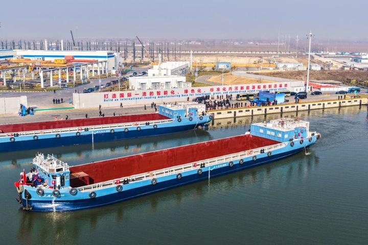本次儀式交付的首批5艘純電動貨船及新簽訂的50艘訂單船舶,將全部投入京杭運河流域,構(gòu)成山東省首條實現(xiàn)常態(tài)化、規(guī);\輸?shù)募冸妱迂洿G色航線,覆蓋長三角至華北核心物流通道,單船年運力預(yù)計突破50萬噸。 山東新能船業(yè)有限公司董事長張強介紹,該船隊創(chuàng)新應(yīng)用“船電分離”商業(yè)模式及集裝箱式換電技術(shù),單船載貨量達(dá)2000噸,一次換電即可滿足核心運輸需求,全程實現(xiàn)零排放、低噪音運行。據(jù)測算,僅此批船舶全年即可減排二氧化碳超1300噸,環(huán)保效益斐然。 “此次交付的5艘多用途電船,搭載高容量箱式電源系統(tǒng),配套高壓大功率充換電設(shè)施,可實現(xiàn)15分鐘快速換電、270公里長效續(xù)航,成功構(gòu)建‘船-站-云’一體化商業(yè)閉環(huán)!睂幍聲r代決策顧問委員會副主任曾嶸表示。 濟(jì)寧能源集團(tuán)黨委書記、董事長張廣宇說,新能船業(yè)是濟(jì)寧能源集團(tuán)聯(lián)合寧德時代、中集集團(tuán)、中船集團(tuán)、武漢理工大學(xué)等共同打造的新能源船舶制造項目,可研發(fā)、設(shè)計、生產(chǎn)滿足不同應(yīng)用場景需求的內(nèi)河標(biāo)準(zhǔn)化船舶系列產(chǎn)品。截至目前累計簽約訂單180余艘,2025年下水船舶100艘、交付80艘。與法國達(dá)飛等企業(yè)合作建造的7艘新能源船成功出口至越南、坦桑尼亞、古巴、贊比亞等國家。