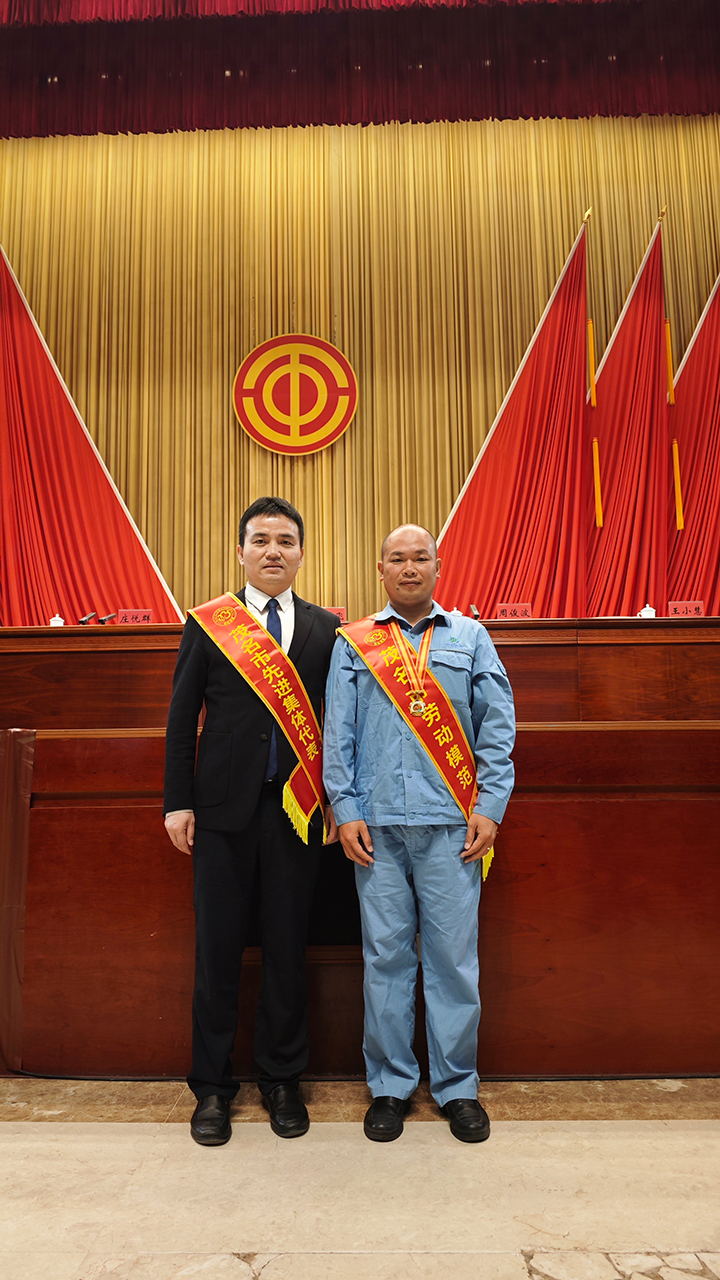茂名港集團(tuán)黨委書(shū)記、董事長(zhǎng)王志華(左一)作為市先進(jìn)集體領(lǐng)獎(jiǎng)代表,與市勞動(dòng)模范、茂化實(shí)華東油公司安全生產(chǎn)部副經(jīng)理?xiàng)罱∥模ㄓ乙唬┰陬C獎(jiǎng)現(xiàn)場(chǎng)合影